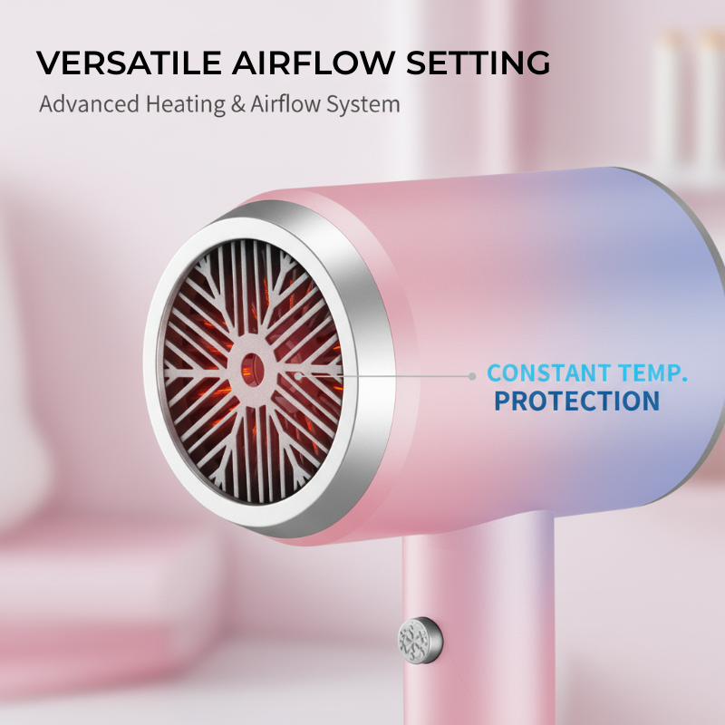 - Mehrere Wärme- und Geschwindigkeitsstufen: individuell anpassbar